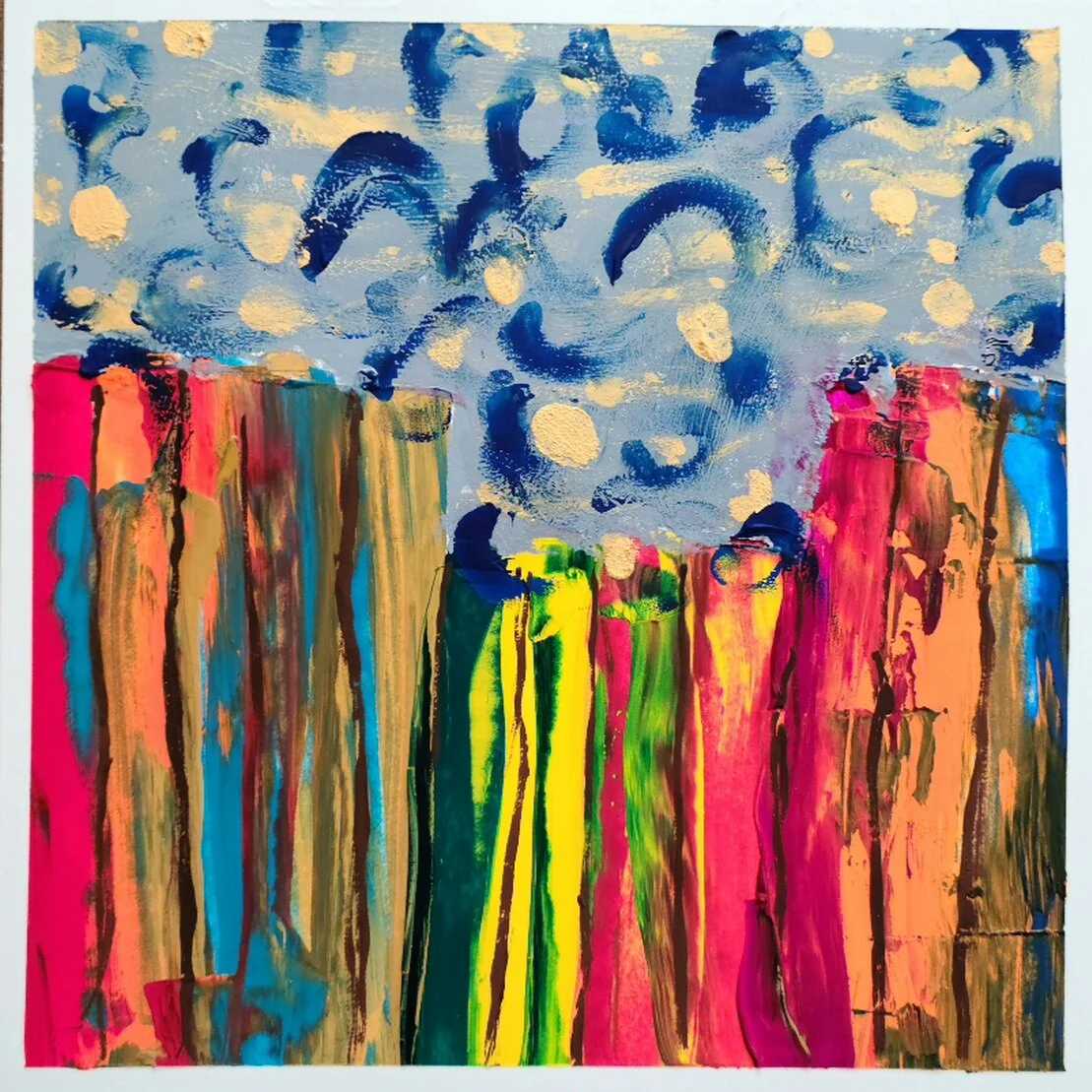 Works on paper are primarily done in either water-based gouache or acrylic gouache. All of them aim to explore color, pattern, and movement.